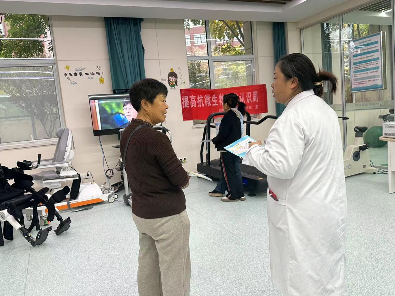 在此期间,蚌埠市第四人民医院(市康复医院)积极响应,于11月20日在康复治疗大厅成功举办了一场面向患者家属的宣教活动。活动现场,康复大厅的宣传屏幕持续滚动播放着抗微生物药物的宣传资料及主题宣传片,生动直观地展示了活动的重要性与紧迫性。