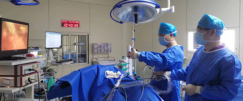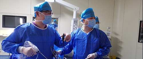 刘传喜医师,支永成主治医师一起完成腹腔镜下肾囊肿去顶术1